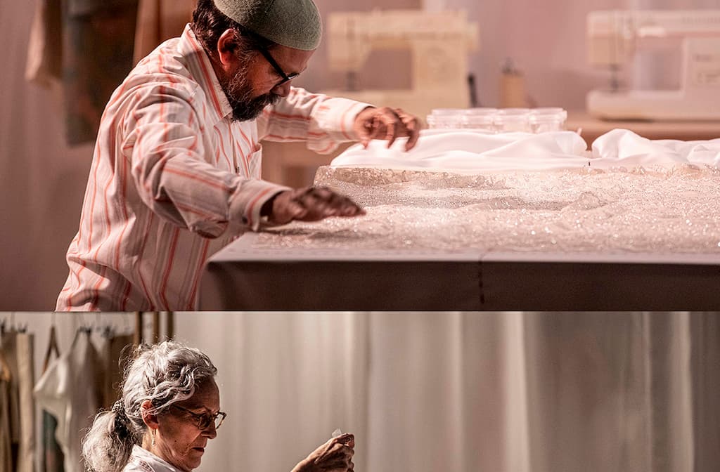 In LACRIMA gunt regisseur Caroline Guiela Nguyen ons een zeldzame blik achter de schermen van de haute couture. De voorstelling volgt de handen die de jurk maken: van een coutureatelier in Parijs, via een kantwerkplaats in Alençon, tot een borduuratelier in Mumbai, waar vakmanschap van generatie op generatie wordt doorgegeven. Tegelijk stelt LACRIMA een urgente vraag: hoe kijken we naar de ongelijkheid en postkoloniale machtsverhoudingen van de haute couture?