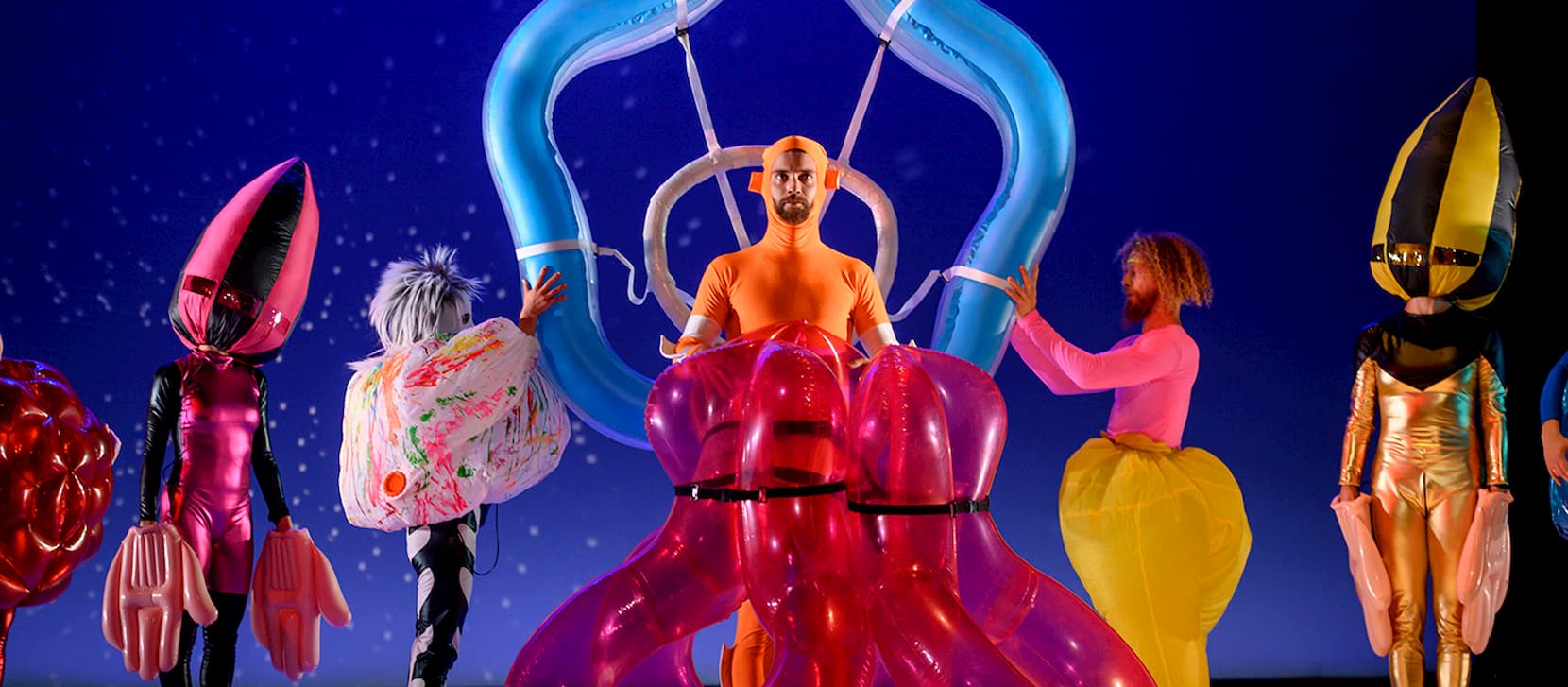 Felgekleurd, uitbundig en ongeremd. Een visuele wervelwind vol dans en absurde scènes. Met muziek van Brigitta Muntendorf en Bernd Alois Zimmermann, uitgevoerd door het Residentie Orkest. bekijk details
